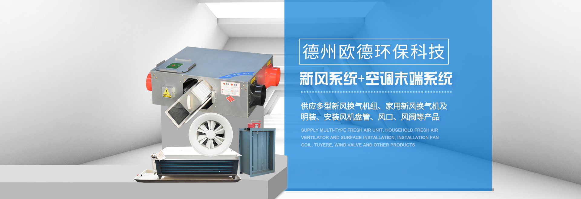 德州歐德環保科技有限公司位于山東省德州市武城經濟開發區,是一家集空調設備產、研、銷相結合的現代化企業。歐德以技術水平、服務標準,贏得客戶的信任。公司建有現代化水平的商用空調設備生產線與末端設備生產線,可定制生產多型空調設備。  公司主要產品:風機(排煙風機、軸流風機、邊墻風機、斜流風機(混流風機)、屋頂風機、離心風機、誘導風機)、新風處理機組、吊頂式空調器、風機盤管(臥式暗裝風機盤管、臥式明裝風機盤管、立式明裝風機盤管、卡式風機盤管等),各類通風管道(共板法蘭風管、酚醛風···